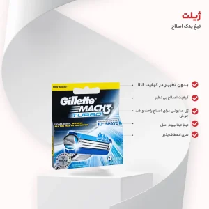 تیغ یدک اصلاح ژیلت مدل مچ تری توربو بسته 4 عددی