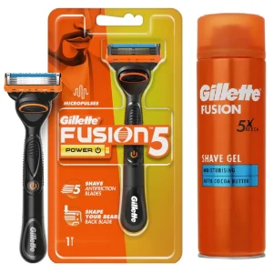 خود تراش ژیلت مدل FUSION 5 POWER به همراه ژل اصلاح ژیلت مدل MOISTURISING حجم 200 میلی لیتر