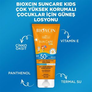 کرم ضد آفتاب کودک بیوکسین Bioxcin با محافظت بسیار بالا برای پوست های حساس و خشک Spf 50+