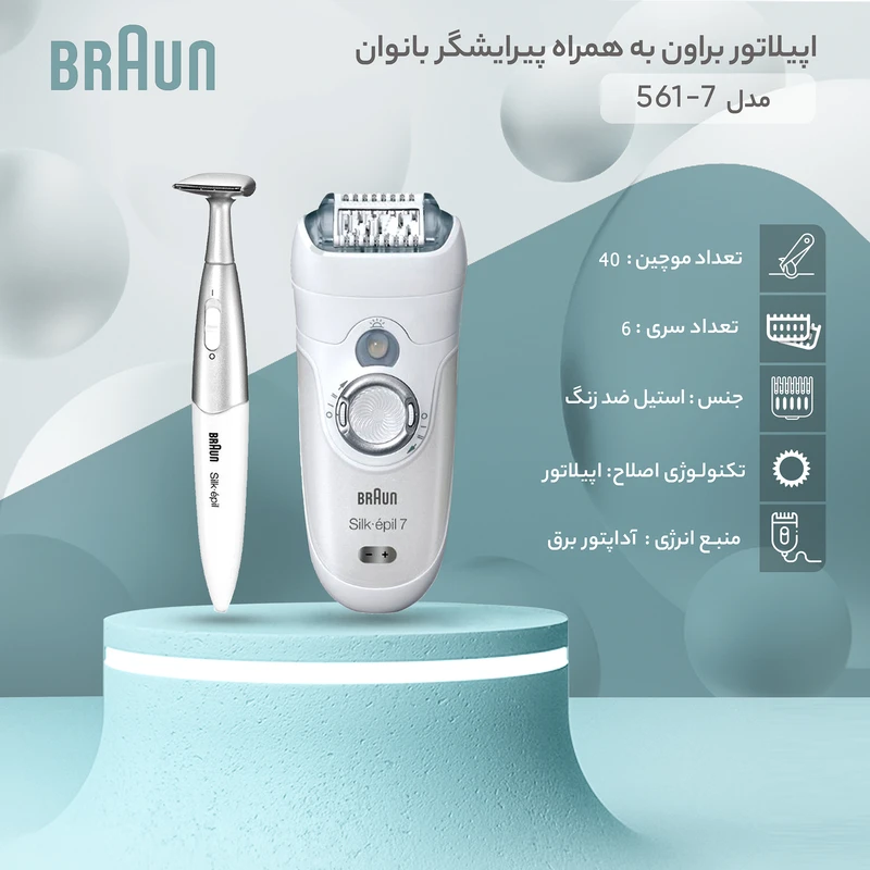 اپیلاتور براون مدل 561-7به همراه پیرایشگر بانوان براون