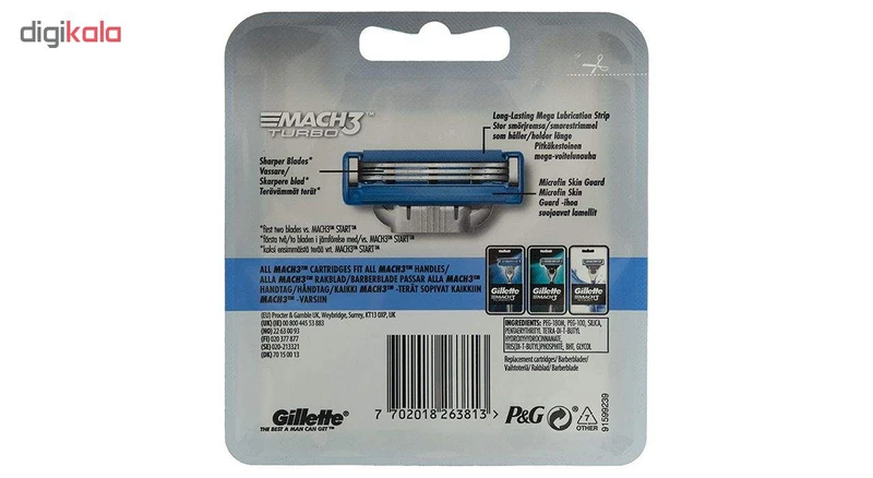 خودتراشها معمولا برای اصلاح موی صورت و موهای زاید بدن مورد استفاده قرار میگیرند. وسیلهای که بدون درد و زحمت زیادی امکان استفاده راحتی را برای مصرف کننده بوجود میآورد. با خرید یکبار خودتراش می توان سری و یدکهای آن را به طور جداگانه تهیه کرد و پس از یکبار استفاده نسبت به تعویض سری اقدام نمود.ژیلت یکی از برندهای معروف در زمینه تولید محصولات مراقبتهای شخصی است. معروفترین محصول این برند تیغهای خودتراش است. تیغ یدک ژیلت مدل «Mach 3 Turbo» در بستهبندی 4 عددی عرضه میشود. «Mach 3» در واقع اولین خودتراش سه تیغه بود که توسط ژیلت معرفی شد. این مدل علاوه بر کاهش زمان اصلاح، قابلیت انعطافپذیری و فنری بهتری نسبت به مدلهای قبل دارد. پس از آن در تولید تیغهای «Mach 3 Turbo» که مدل پیشرفتهتر تیغهای «Mach 3» است، از روانکنندههای بهتر و تیغهای ضد اصطکاک استفاده شده است. این تیغها از استیل ضد زنگ تهیه شده است. میزان برندگی این تیغها بسیار بالا است و با کوچکترین اشاره اصلاح شما صورت میگیرد. استفاده از نوار ژل در بالای تیغ به عنوان روانکننده کیفیت بهتری از این محصول را ارائه میدهد. میتوانید این تیغ یدک را برای تمام دسته تیغهای سری «Mach 3» استفاده کنید.