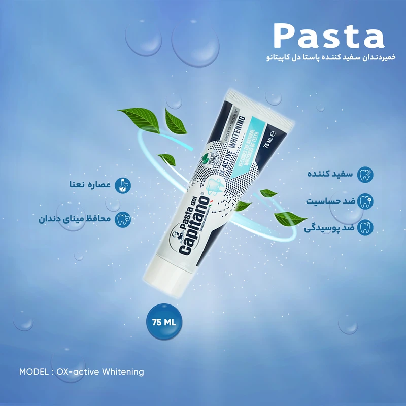 خمیردندان سفید کننده پاستا دل کاپیتانو مدل OX-active Whitening حجم 75 میلی لیتر