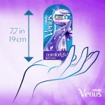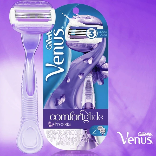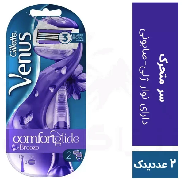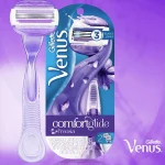 اصلاح موهای بدن می‌تواند کاری آسان و بدون تحمل درد باشد اگر برای این کار از سری محصولات ونوس برند معروف و قدیمی ژیلت استفاده شود. خودتراش‌ها و تیغ‌های یدک ژیلت سال‌ها است توسط خانم‌ها و بویژه آقایان استفاده می‌شود و قریب به اتفاق مصرف کنندگانش به کیفیت بالای آن ایمان دارند. خودتراش ونوس بریز کامفورت گلاید یکی از خاص‌ترین و جدیدترین خودتراش‌های این کمپانی است که برای اصلاح نقاط حساس بدن طراحی شده تا احتمال بریدگی پوست را کاهش دهد. سری این خودتراش با سایر خودتراش‌های مخصوص خانم‌های ژیلت متفاوت است و می‌تواند قسمت‌های بالایی پا و نزدیک به بیکینی را که امکان اصلاح آن خیلی هم راحت نیست، با دقت و به آسانی اصلاح کند. در بسته بندی این محصول 2 عدد تیغ یدک مخصوص خودتراش ونوس بریز هم وجود دارد که می‌تواند بر روی دسته‌ی خودتراش سوار شود و با یک دسته و تیغ‌های comfort glide اصلاح راحتی را رقم بزند. با استفاده از خودتراش‌های ژیلت دیگر نیازی به استفاده از نوار‌های موبر و یا دستگاه‌های اپیلاتور برقی که اتفاقا باعث ایجاد درد و سوزش می‌شوند وجود ندارد. در قسمت بالایی تیغ‌های بریز دو نوار صابونی تعبیه شده که در هنگام تماس با آب سطح پوست را لغزنده می‌کنند تا تیغ راحت‌تر حرکت کند.