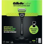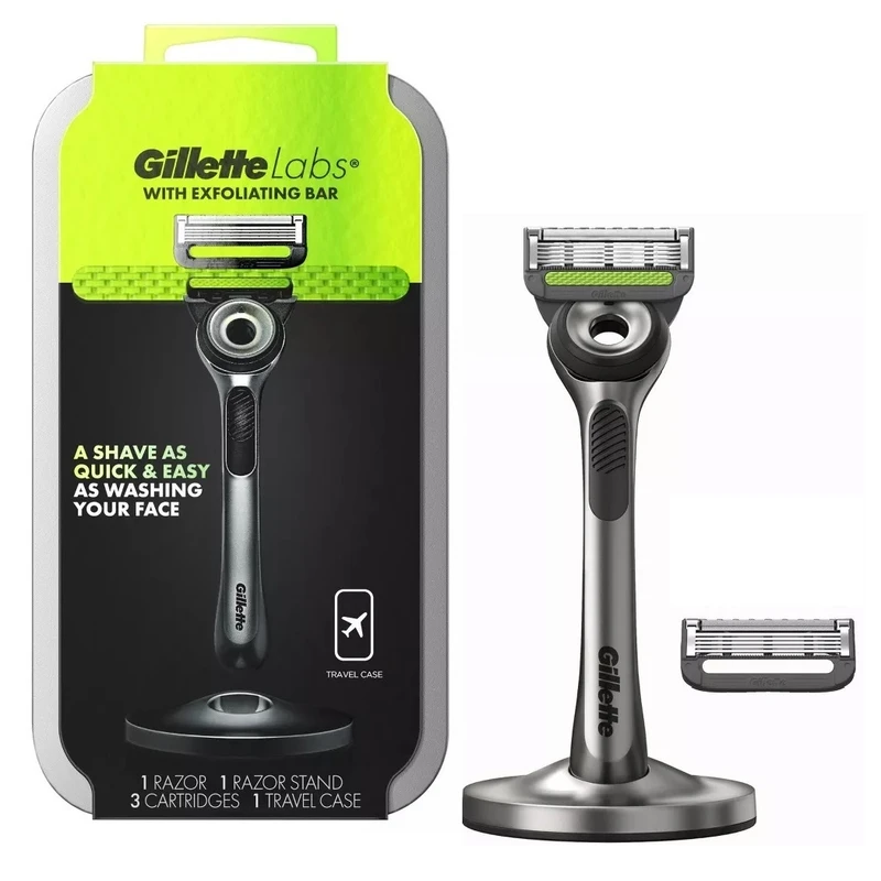خودتراش مردانه Gillette Labs EXFOLIATING BAR شامل کیف مسافرتی برای نگهداری و حمل , 1 دسته خودتراش به اضافه 1 عدد یدک و یک بسته تیغ یدک 6 عددی و پایه مغناطیسی ممتاز است . خودتراش مردانه Gillette Labs EXFOLIATING BAR با عنصر تمیز کننده اولین خودتراش در جهان با تکنولوژی تمیز کردن تعبیه شده در دسته است که با هر حرکت اصلاح بی دردسر و تمیز را ارائه می دهد . خودتراش EXFOLIATING BAR دارای نوار لایه بردار است که نوار لایه بردار تعبیه شده هر گونه آلودگی روی پوست را قبل از عبور از تیغه ها از بین می برد. به لطف فناوری 2D Flexdisc، تیغ با صورت شما سازگار می شود و اصلاح به راحتی انجام میشود . این خود تراش مجهز به بهترین تیغ های ژیلت برای اصلاح سریع و آسان طراحی شده است.