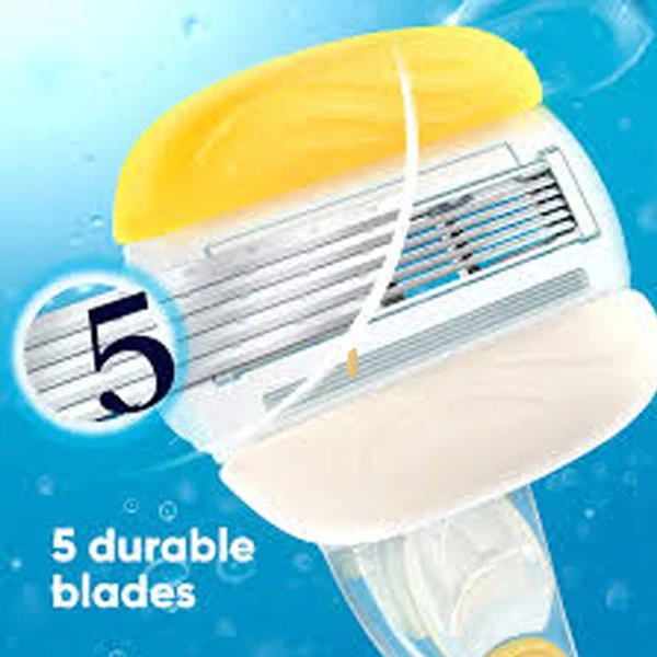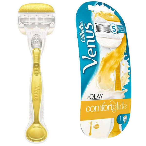 امروزه با تکنولوژیهای پیشرفتهای در ابزارهای مربوط به اصلاح صورت و بدن آقایان و خانمها رو به رو هستیم. خودتراش مدل «ونوس کامفورگلاید» از برند محبوب «ژیلت» (Gillette) یکی از انواع ابزارهای اصلاح مخصوص بانوان است. این خودتراش دارای 5 تیغه از جنس استیل ضد زنگ است که بر روی سری قابل انعطافی تعبیه شدهاند. بر بالای این تیغهها نوار ژلی با ترکیبات مرطوب کننده و نرم کنندهی کرمی قرار دارد. این نوار ژل کمک بسیار موثری در هنگام اصلاح میکند. ترکیبات کرمی آن، از آسیب دیدن و خشک شدن پوست پس از اصلاح پیشگیری میکند. این ترکیبات ضمن حفظ لطافت و نرمی پوست، رایحهی دلپذیری را پس ار اصلاح بر جای میگذارند. وجود این نوار ژل، نیاز استفاده از صابون و یا هر نوع کرم برای ایجاد لغزندگی و نرمی جهت حرکت تیغ بر روی پوست، را از بین برده است. از دیگر ویژگیهای این خودتراش ژیلت، دستهی ارگونومیک آن است که در هنگام اصلاح به راحتی قابل کنترل است. برای حفظ لطافت پوست، پیشگیری از زخم شدن و انجام اصلاحی کامل و راحت، انتخاب این محصول از برندی با کیفیت بسیار مطلوب خواهد بود. «ژیلت» (Gillette) یکی از برندهای پیشرو در زمینه ساخت ابزار اصلاح برای خانمها و آقایان است. ژیلت کاه اولین بار با تولید تیغهای کوچک شهرت یافت، این روزها تنوع بسیار بالایی در انواع تیغها و خودتراشها دارد. ژیلت در کنار ایجاد تنوع سعی کرده تا کیفیت محصولات خود را حفظ و حتی بهتر کند.