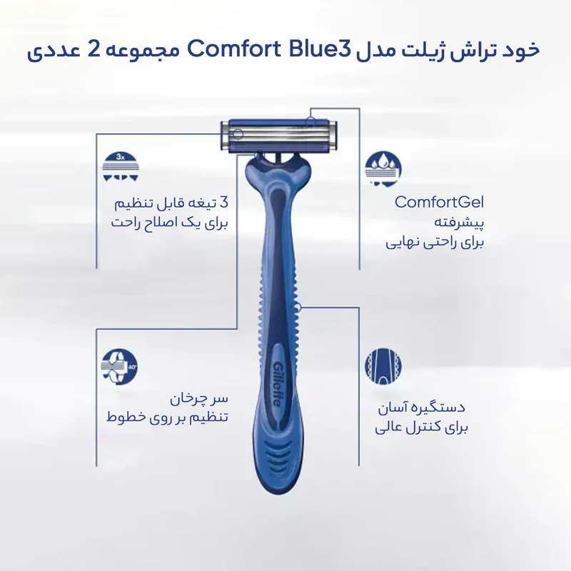 خود تراش ژیلت مدل Blue3 مجموعه 2 عددی