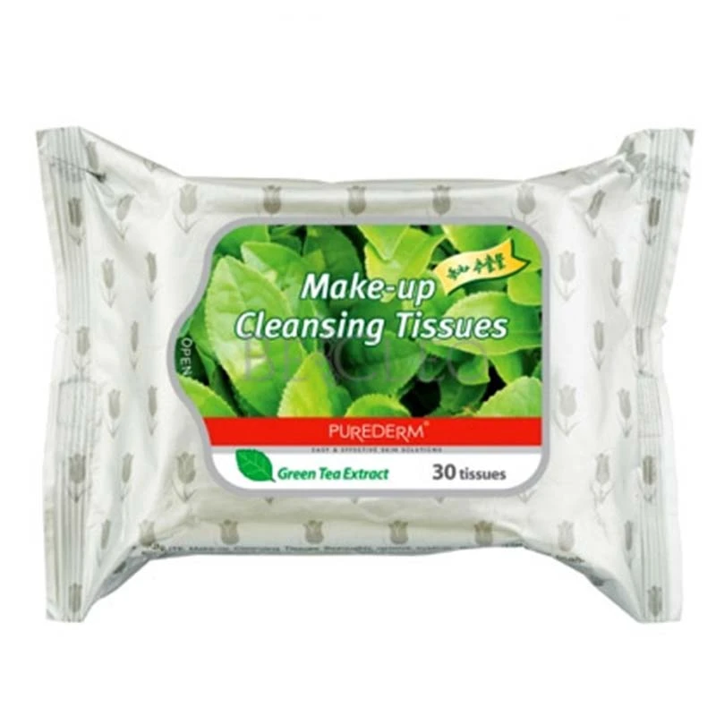 دستمال مرطوب پاک کننده آرایشی چای سبز پیوردرم بدون ایجاد التهابات پوستی انواع مواد آرایشی حتی مواد ضد آب از جمله خط چشم ، سایه، رژ لب و ریمل را از پوست پاک می نماید.