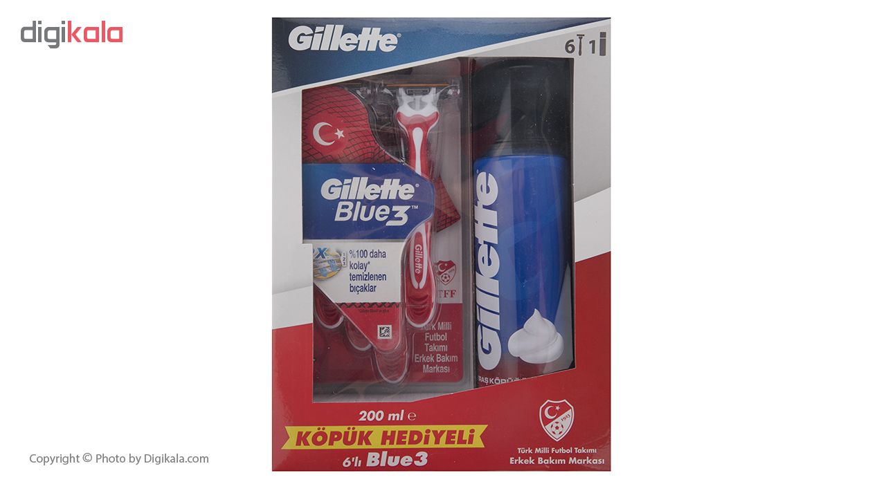ست اصلاح ژیلت مدل Blue 3 مجموعه 6 عددی همراه با فوم اصلاح