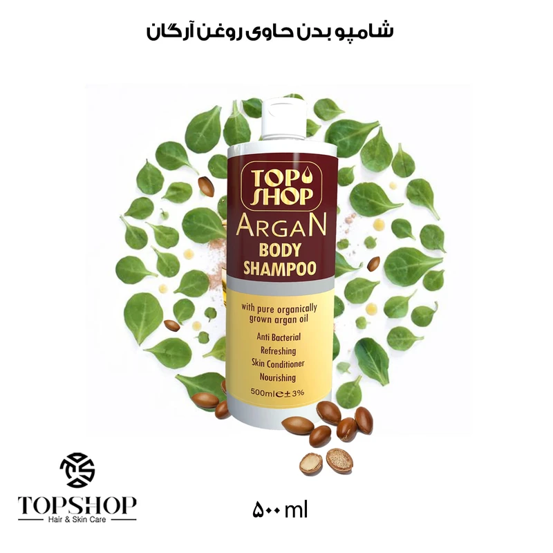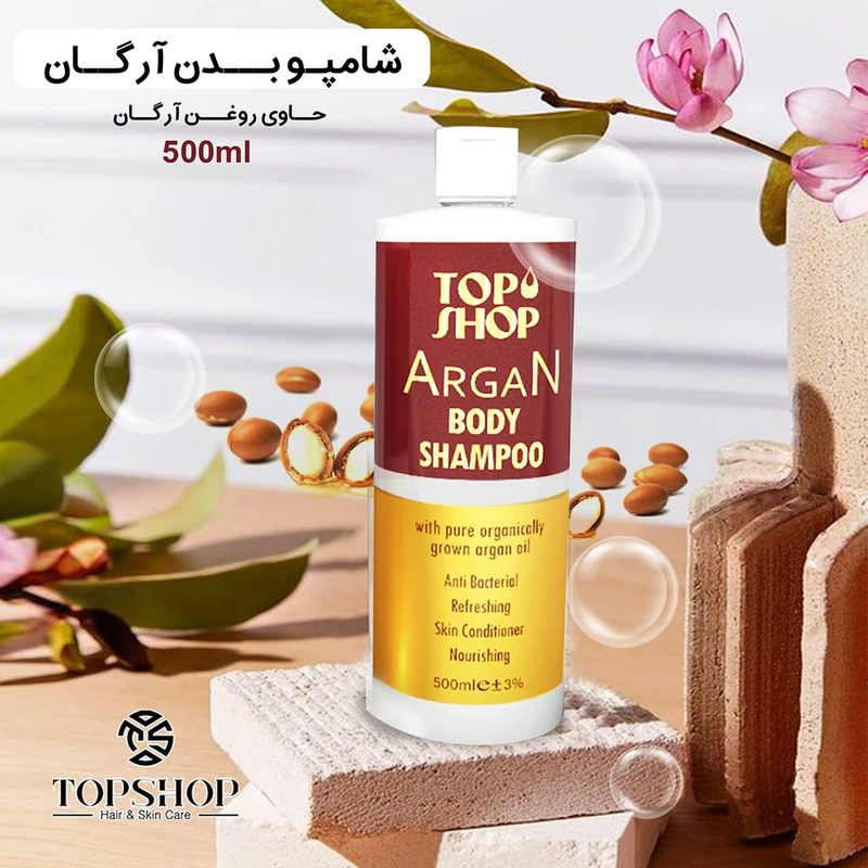 شامپو بدن از مواد شوینده موثر و روشی عالی برای تمیز کردن بدن در حمام است که علاوه بر حفظ سلامت پوست به دلیل بافت نرم ابریشمی باعث ایجاد احساس خوب روی پوست خواهد شد. در حمام بهتر است بجای صابون ها از شامپو بدن استفاده کنید زیرا شامپو بدن همانند صابون ها چربی های طبیعی پوست را در خود زیاد از حد حل نکرده و باعث خشکی پوست نمی شود. صابون از ترکیبات صابونی و ترکیبات حلال در چربی استفاده می شود. اما در ترکیب شامپو بدن تاپ شاپ حاوی روغن آرگان از مواد غیر صابونی استفاده میشود که به PH پوست نزدیک تر است.