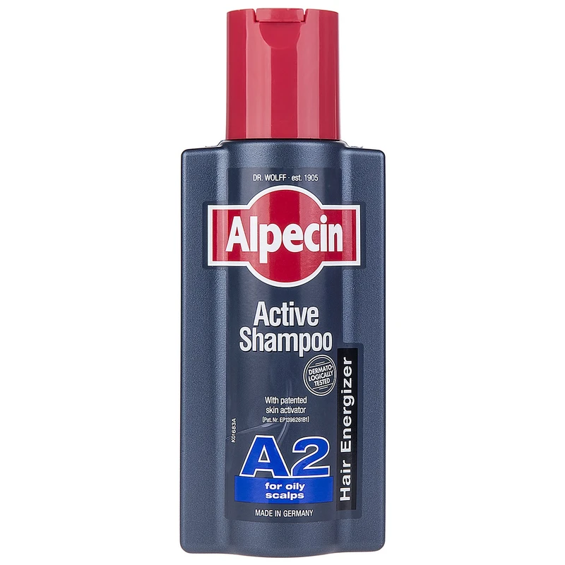 چرب شدن موها می‌توان بر اثر عوامل خارجی مانند آلودگی‌های محیطی و یا ترشح چربی توسط غدد چربی ساز پوست سر اتفاق بیافتد. آلودگی‌های محیطی را می‌توان توسط یک شامپوی روزانه برطرف کرد اما در صورت ترشح بیش از اندازه‌ی چربی باید از شامپوهای درمان‌کننده‌ی این وضعیت استفاده کرد. شامپوی A2 Active در دسته‌ی شامپوهای درمانی آلپسین قرار دارد که به درمان حالت غیرطبیعی مو و برگرداندن آن به وضعیت طبیعی کمک می‌کند. این شامپو برای موهای چرب و استفاده‌ی روزانه ساخته شده است. این شامپو تعادل غدد چربی ساز را حفظ می‌کند و از ترشح بیش از حد چربی جلوگیری می‌کند. به این ترتیب سرعت چرب شدن موها را کم کرده و باعث می‌شود مو مدت‌زمان بیشتری حالت خود را حفظ کند. خاصیت محافظت از پوست سر، باعث می‌شود که پوست سر مقاومت بیشتری داشته باشد و از ریشه موها بهتر محافظت کند. از مهم‌ترین مواد به کار رفته در این شامپو می‌توان به بیزابولول، آلانتونین و کافئین اشاره کرد. بیزابولول از اصلی‌ترین ترکیبات موجود در گیاه بابونه است که ضمن تسکین دادن و رفع التهاب پوست سر از خارش آن جلوگیری می‌کند. آلانتونین هم خواصی مانند بیزابولول اما قوی‌تر دارد و پوست سر حساس و ملتهب را بهبود می‌بخشد. کافئین هم که از شناخته‌شده‌ترین مواد موجود در طبیعت است که به میزان زیادی در محصولات مراقبت از مو استفاده می‌شود. کافئین به روند بهبود و بازگشت پوست سر آسیب‌دیده کمک کرده و آن را تقویت می‌کند به این ترتیب پوست سر در مقابل عوامل خارجی مانند یک سپر محافظتی عمل می‌کند. علاوه بر این کافئین تأثیر منفی تستسترون که باعث ریزش مو می‌شود را کاهش می‌دهد. به طور خلاصه شامپوی Alpecin A2 Active با داشتن ترکیبات مؤثره ضمن محافظت از پوست سر و حفظ تعادل غدد چربی ساز باعث تقویت و شادابی موها نیز می‌شود.