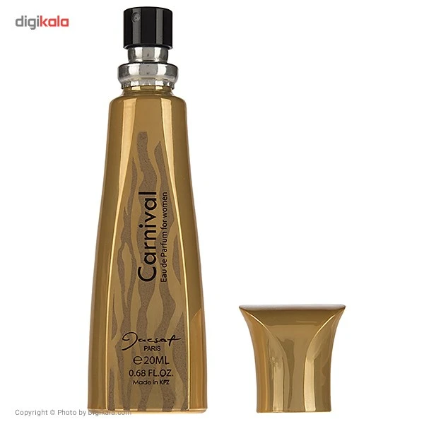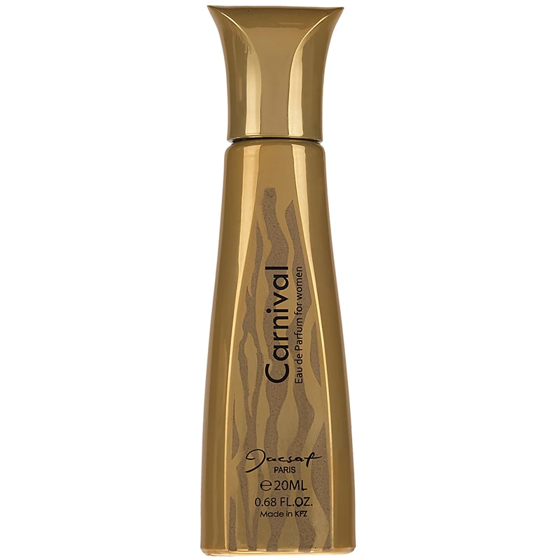 عطرهای جیبی برند ایرانی «ژک ساف» (Jacsaf) همیشه از کیفیت بالایی برخوردار بوده و هستند. یکی از عطرهای جدید این برند با نام «کارناوال» (Carnival) شناخته می‌شود. ادو پرفیوم کارناوال برای بانوان ساخته شده است. این عطر حجمی برابر با 20 میلی‌لیتر دارد و تا مدت کوتاهی عطر شماره یک شما خواهد بود. با توجه به غلظت مناسب این عطر به این زودی‌ها شاهد خالی شدن بطری آن نخواهید بود. Carnival بوی تند، شیرین و گرمی دارد و برای استفاده در تمامی فصول سال به‌ویژه پاییز و زمستان پیشنهاد می‌شود. بطری Carnival بسیار جذاب و زیبا طراحی شده است. بطری به رنگ طلایی است و به‌خوبی در دست جا می‌شود. روی بطری نام کارناوال و نشان تجاری ژک ساف با رنگ مشکی دیده می‌شود. طرح طلایی‌رنگی که روی بطری کار شده آن را زیباتر کرده است. پس از اسپری کردن Carnival روی پوست و محل نبضتان بوی گل و چوب در فضای اطراف پخش می‌شود. این عناصر گرم و شیرین تازگی و انرژی ویژه‌ای را به شما و اطرافیانتان منتقل می‌کنند. خرید عطر ژک ساف Carnival با توجه به پخش بوی قوی، ماندگاری بالا، حجم 20 میلی‌لیتری و قیمت نه‌چندان بالایش برای شما و کسی که این عطر را از شما هدیه می‌گیرد بسیار خوشحال‌کننده به نظر می‌رسد.
