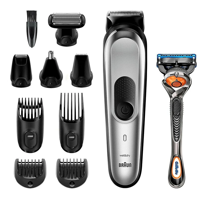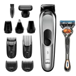 ماشین اصلاح موی سر و صورت و بدن براون مدل MGK7220 به همراه تیغ ژیلت، با طراحی ارگونومیک، سری قابل شستوشو و تیغههای Lifetime Sharp، منبع انرژی باتری قابل شارژ، اندازه اصلاح 0.5 تا 21 میلیمتر، جنس تیغه استیل ضد زنگ، مدت زمان استفاده پس از شارژ 100 دقیقه