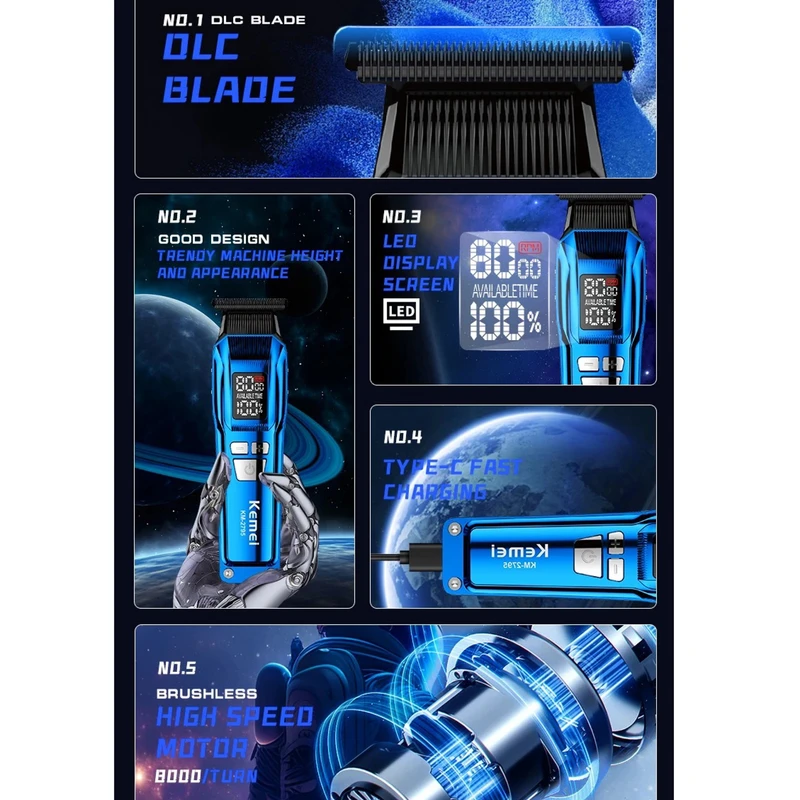 تیغه برش Kemei KM-2795 از فولاد ضد زنگ با روکش کربن DLC با کیفیت بالا ساخته شده است که وضوح و دوام را در طول زمان تضمین می کند.