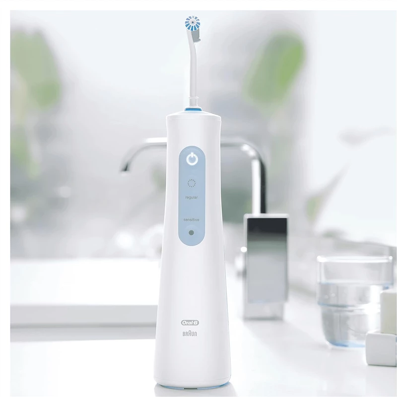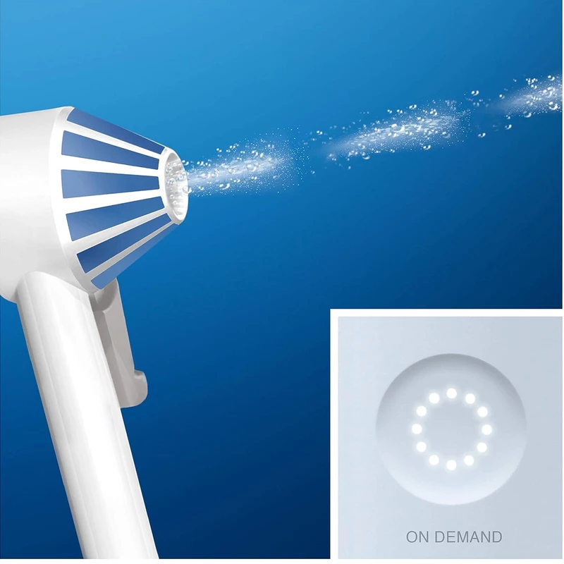آبفشان اورال بی مدل AQUA CARE 4 برای مراقبت روزانه از دهان و لثه و تمیز کردن بیشتر بین دندان ها استفاده می گردد. AQUA CARE 4 به بهبود سلامت لثه کمک می کند و به آرامی مواد غذایی گیر افتاده بین دندان ها را به خصوص کسانی که ارتودنسی و لمینت کرده اند را تمیز می کند. تکنولوژی اکسی جت آب را با حباب های ریز هوا غنی می کند و سلامت دهان و دندان شما را افزایش می
