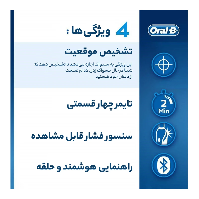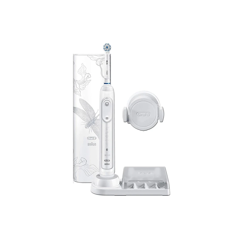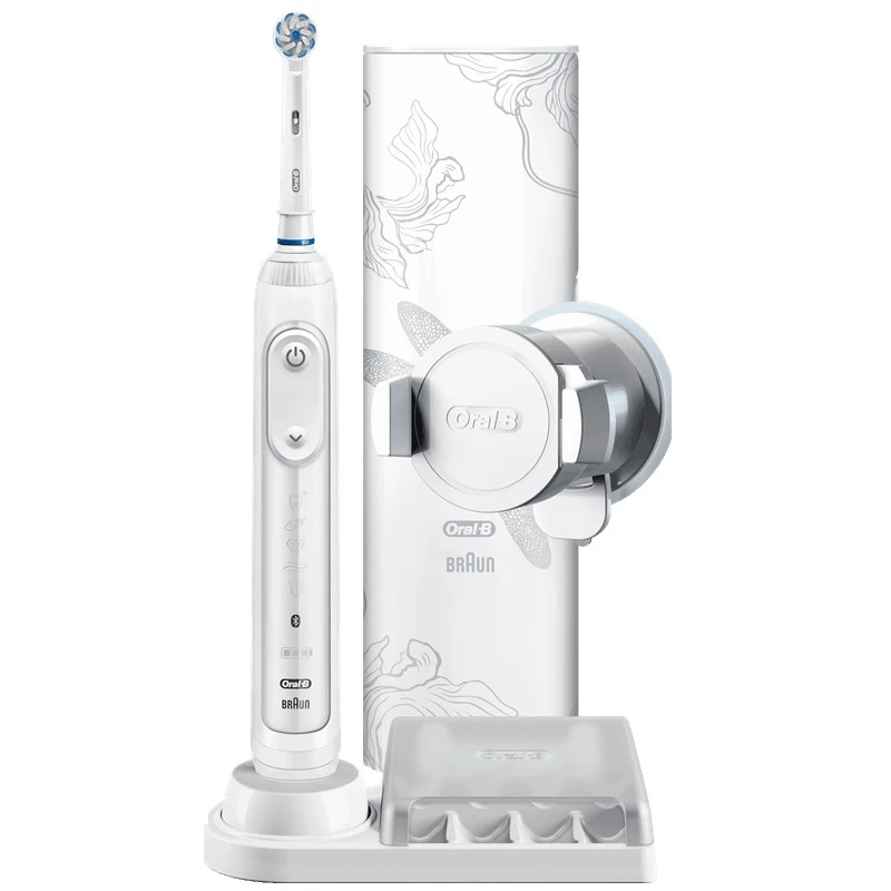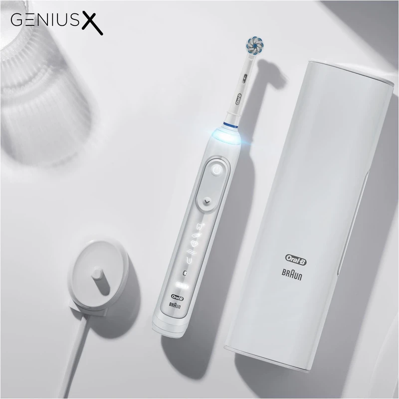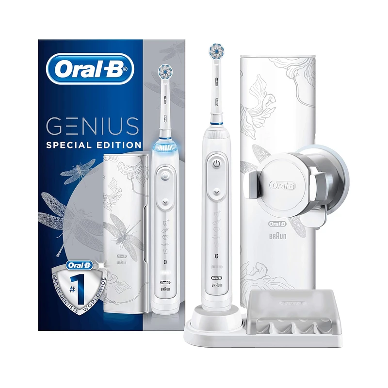 مسواک برقی هوشمند اورال بی مدل GENIUS دارای فناوری محافظت از لثه ها می باشد. این محصول تا 100 درصد بهتر از مسواک دستی های معمولی عمل کرده و از روز اول استفاده پلاک های دندان و لکه های زرد را به آسانی از بین خواهد برد.سلامتی دهان ها و لثه ها را بهبود بخشیده و با فناوری هوشمند خود و سنسور فشار، با اعلام هشدار صوتی به طور خودکار سرعت مسواک زدن را کاهش داده و از ایجاد فشار بیش از حد به لثه ها و التهاب و خونریزی آنها جلوگیری خواهد کرد. سر این برس از نوع Sensi Ultrathin بوده و با موهای گرد و زاویه دار شستشوی موثری را فراهم خواهد نمود. موهای این برس نرم می باشد و مناسب استفاده برای اشخاصی است که لثه های حساسی دارند. حلقه های 360 درجه LED بر روی بدنه ی این محصول، قابلیت نشان دادن 12 رنگ را با برنامه ی نصب شده در گوشی برای بهبود عادت مسواک زدن شما فراهم می آورند. سیستم حرکت برس آن لرزشی چرخشی و 3 بعدی بوده که علاوه بر تمیز کردن موثر دندانها سبب ماساژ لثه ها نیز خواهد شد. 6 عملکرد مختلف شستشوی دندان از جمله شستشوی روزانه، پاکسازی عمقی، سفیدکنندگی، مخصوص دندان های حساس، ماساژ لثه و تمیزکننده زبان حالتهای مناسب مراقبت از دندان و دهان را برای مصرف کننده فراهم خواهد نمود.