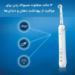 محصول فوق دارای 3 حالت مختلف مسواک زدن از جمله پاکسازی استاندارد، ملایم و سفید کننده است. شما می‌توانید با انتخاب حالت مناسب دندان‌های خود از سلامت دندان‌هایتان محافظت و از پوسیدگی آن‌ها جلوگیری کنید. این محصول اورال بی از طریق بلوتوث قابلیت وصل شدن به اپلیکیشن اختصاصی گوشی را دارد. این قابلیت با تشخیص تکنیک مسواک زدن شما و ارسال داده‌های سنسور به گوشی، روش مسواک زدن شما را بهبود می‌بخشد.