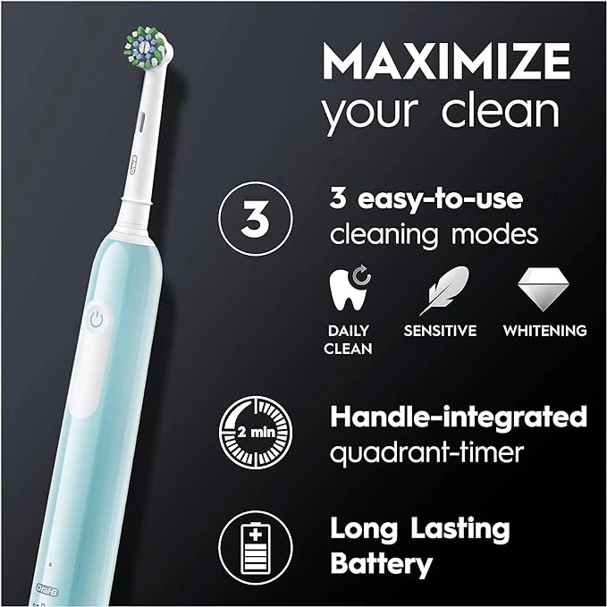 با مسواک برقی Oral B PRO SERIES 1 در مقایسه با مسواک دستی در امتداد خط لثه تا 100٪ پلاک بیشتر را از بین ببرید و در عین حال از لثه ها با فناوری سر مسواک گرد الهام گرفته از دندانپزشک ها محافظت کنید. از لثه های خود با حالت تمیز کردن حساس و کنترل فشار لثه محافظت کنید که به طور خودکار ضربان مسواک را هنگام مسواک زدن خیلی سخت متوقف می کند. مسواک Oral B PRO SERIES 1 دارای فناوری سه بعدی است که باعث می شود مسواک نوسان ، چرخش و ضربان داشته باشد تا پلاک بیشتری از دندان های شما پاک کند.به حداکثر رساندن عملکرد تمیز کردن با 3 حالت تمیز کردن آسان برای استفاده و تایمر یکپارچه در دسته مسواک که هر 30 ثانیه به شما هشدار می دهد : منطقه مسواک زدن را تغییر دهید. سری گرد مسواک های برقی Oral-B به جایی از دهان می رسند که برس های مسواک های دستی مستطیل شکل نمی رسند، تمیزی بهتری را از مسواک های برقی که توسط بیشتر دندانپزشکان در سراسر جهان توصیه می شود را تجربه کنید.