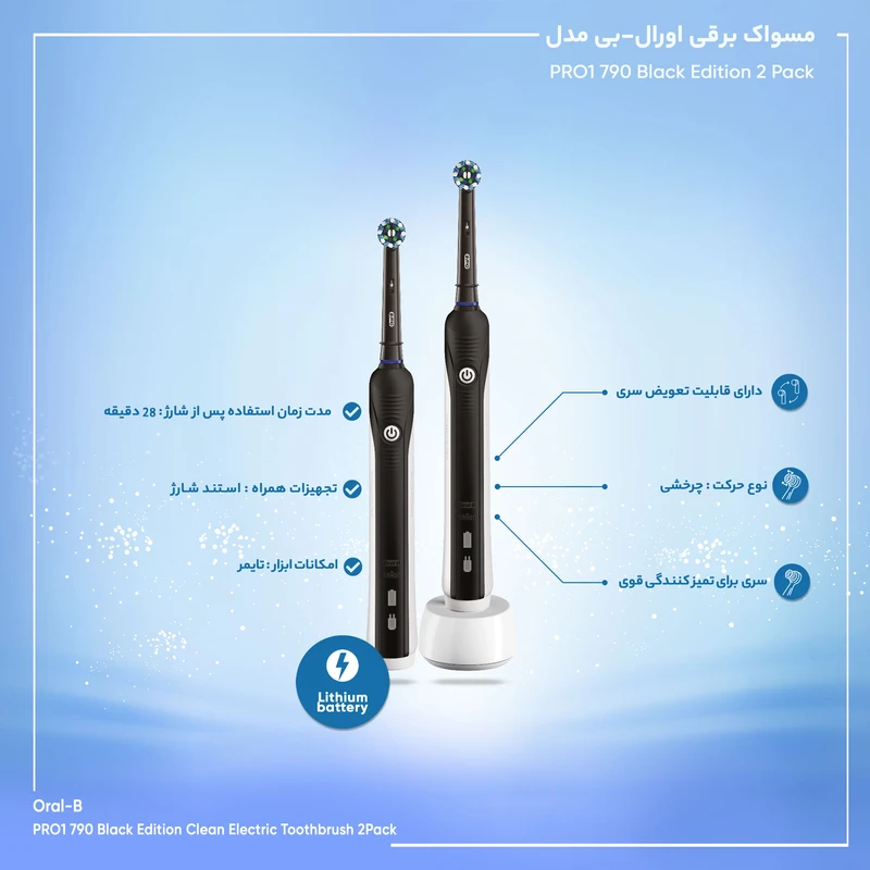 مسواک برقی اورال-بی مدل PRO1 790 Black Edition بسته 2 عددی