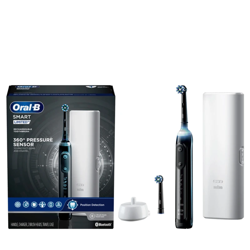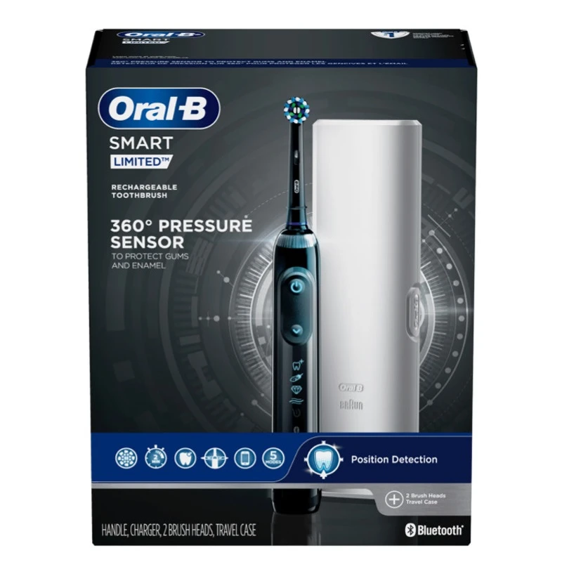 با مسواک برقی Oral-B Smart Limited از طریق برنامه Oral-B برای اتصال با تلفن هوشمند استفاده کنید تا همانطور که دندانپزشکان توصیه می کنند در مسیر درست مسواک بزنید. Oral-B Smart Limited دارای فناوری تشخیص موقعیت است که از بلوتوث، تلفن هوشمند و فناوری تشخیص چهره برای ارائه بازخورد تخصصی در مورد عادات مسواک زدن شما استفاده می کند. تشخیص موقعیت به شما کمک می کند بدانید کجا را مسواک زده اید، بنابراین هرگز منطقه ای را از دست نمیدهید. 360 SmartRing با چراغ های LED به شما این امکان را می دهد که تجربه مسواک زدن خود را با انتخاب 12 رنگ شخصی سازی کنید. SmartRing با تایمر و سنسور فشار یکپارچه کار می کند تا بازخورد بصری را در مورد زمان مسواک زدن و فشار مسواک زدن به شما ارائه دهد. این تکنولوژی به شما کمک می کنند تا مطمئن شوید که به مدت 2 دقیقه توصیه شده مسواک بزنید و در عین حال مطمئن شوید که با فشار مناسب مسواک می زنید تا از مسواک زدن بیش از حد از آسیببه لثه ها محافظت کنید. Oral-B Smart Limited دارای 5 حالت مسواک زدن است. Oral-B Smart Limited بسیار پیشرفته دارای سر گردی است که توصیه دندانپزشکان است که هر دندان را با حرکات نوسانی، چرخشی و ضربانی پویا احاطه می کند و تا 500٪ بیشتر از یک مسواک دستی معمولی پلاک را از بین می برد. فناوری سنسور فشار سرعت برس را برای محافظت از لثه کاهش می دهد. سازگار با سرهای برس Oral-B برای رفع هر نوع نیاز مراقبت از دهان و دندان های شما است . سازگار با سری های : Sensetive – Precision Clean – 3D White – Cross Action – Floss Action – TriZone – Pure Clean است .