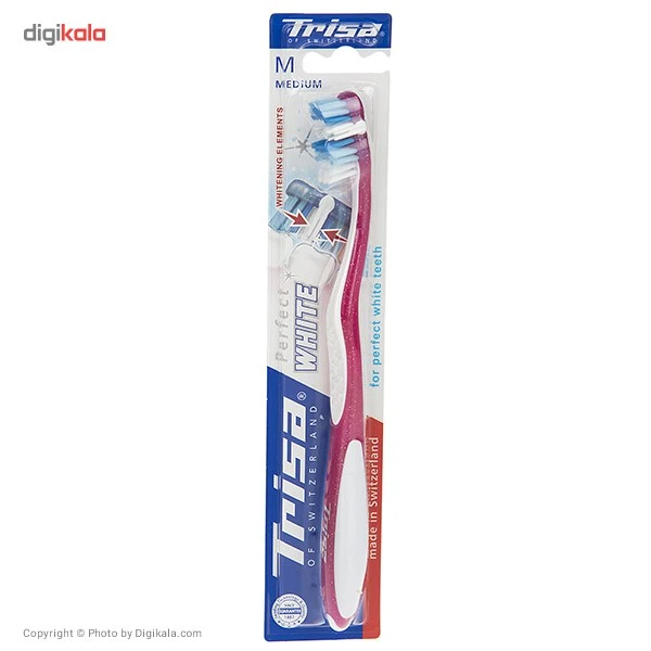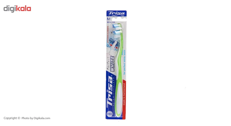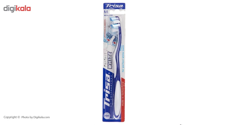 شاید تصور اینکه یک مسواک چقدر می‌تواند در سفیدی دندان موثر باشد خیلی کار ساده‌ای به نظر نرسد، اما وقتی پای برند تخصصی و موفقی نظیر «تریزا» (Trisa) میان باشد، باورش ساده خواهد بود. مسواک «تریزا» مدل «Perfect White» یکی از همین محصولات است که یک سری حرفه‌ای با کیفیت بالا و عملکرد موثر دارد. این محصول، برسی با درجه زبری متوسط دارد و با توجه به اندازه‌ی سری در دسته‌ی مسواک‌های سایز متوسط دسته‌بندی می‌شود و برای اغلب افراد مناسب استفاده است. طراحی چهارقسمتی الیاف سری از جمله مزایای مهم آن است. الیاف اسفنجی که در میان الیاف‌ها تعبیه شده، همان قسمتی هستند که به شکل حرفه‌ای به تسریع در سفید کردن دندان‌ها کمک می‌کند. استفاده از مواد لغزش هم دیگر ویژگی دسته در کنار ارگونومی آن است. الیاف بلند و زاویه‌دار این مسواک هم به تمیزکردن موثر فضای بین دندان‌ها کمک می‌کند. برای این مسواک یک قسمت زبان پاک کن هم در نظر گرفته شده که با دایره‌های برجسته شما را در از بین بردن پلاک روی زبان و حفظ بهداشت دهان یاری می‌کند.