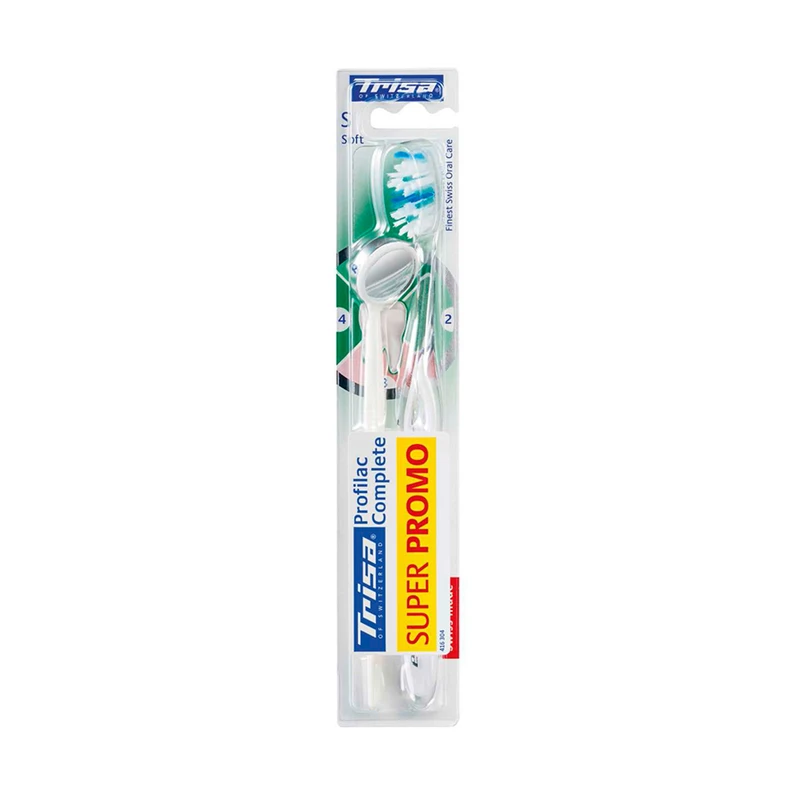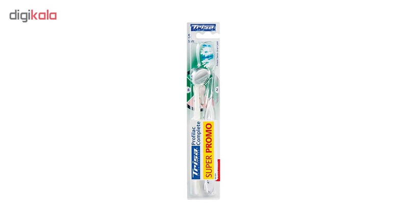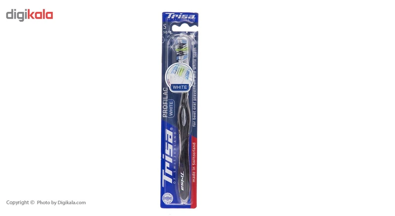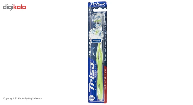 مسواک بزرگسالان برند «تریزا» (Trisa) مدل «Profilac White» برسی بسیار نرم و لطیف دارد. سایز این مسواک متوسط است و بهراحتی در دهان جا میشود و دندانها را تمیز میکند. اندازهی این مدل برای استفادهی بزرگسالان مناسب است. مدل Profilac White بسیار نرم است و برای افرادی که لثه و دندانهایی بسیار حساس دارند، مناسب است. استفاده از مسواکهای معمولی ممکن است به دندان و لثهی این افراد آسیب وارد کند؛ اما میزان نرمبودن مسواک کلگیت به حدی است که نهتنها هیچ آسیبی وارد نمیکند، بلکه بهتر و راحتتر دندانهایتان را تمیز میکند. با مسواک کلگیت بهآسانی میتوان میان دندانها و فضاهای خالی بین دندانها را تمیز کرد تا هیچگونه مواد غذایی و جرمی بین دندانها باقی نماند. مدلProfilac White در رنگهای سبز، سفید و مشکی موجود بوده که زمینهی آن شیشهای و بیرنگ و دستهِی آن رنگی است. مسواک کلگیت دستهای ارگونومیک و خوشدست دارد که استفاده از آن آسان است. از ویژگیهای یک مسواک خوب این است که بهراحتی در دهان جا بگیرد و روی دندانها به حرکت دربیاید و رشتههایی نازک و منعطف داشته باشد تا خیلی سریع تغییرشکل ندهد.