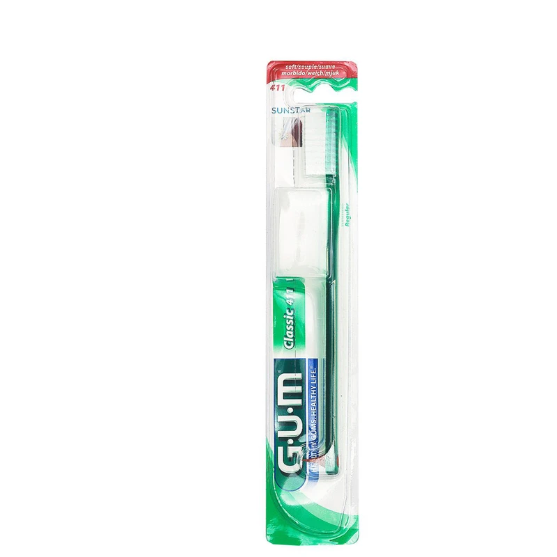 مسواک مدل  Classic 411 با برس نرم و سری بزرگ از محصولات جی یو ام (G.U.M) بوده که دارای سابقه‌ی سال‌ها تولید توسط شرکت باتلر(Butler) در شیکاگو است. بر روی این مسواک تحقیقات کلینیکی انجام شده نشان می‌دهد که باعث کاهش التهاب لثه و کاهش خونریزی آن در طی هفته‌ها استفاده می‌شود. این مسواک دارای چهار ردیف الیاف گنبدی شکل (Dome Trim) با ویژگی منحصر به فرد بوده که بیشترین نفوذ نوک الیاف را به شیار لثه ممکن ساخته و حداکثر پلاک موجود در زوایای مختلف بین دندانی را برطرف می کند؛ همچنین دارای پوشش لاستیکی در انتهای آن برای ماساژ دادن ایمن لثه است که می‌توان از آن به عنوان خلال دندان برای خارج کردن باقی مانده‌ی غذا، قبل از مسواک کردن دندان‌ها هم استفاده کرد.