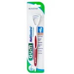 اگر حتی سه بار در روز دندانهایتان را مسواک میزنید اما هنوز بوی ناخوشایندی از دهان بیرون میآید به دلیل باقی ماندن مواد روی زبان است، به همین دلیل G.U.M مسواکی برای پاک کردن زبان از پلاک باکتریها و مواد غذایی طراحی کرده است که به مسواک زبان پاک کن دوکاره معروف است. این مسواک دارای دو ردیف الیاف نایلونی کوتاهِ موازی ولی با فاصله است که وارد شیارها و تورفتگیهای ریز زبان میشود و به آرامی مواد غذایی باقیمانده و باکتریهایی که در ایجاد بوی نامطبوع دهان دخیل هستند را به روی سطح زبان هدایت میکند. بعد از استفاده از برس حالا نوبت برداشتن موادی است که برسها جمع کرده اند، پس به کمک دو ردیف دندانههای پشت برس مواد از روی زبان برداشته میشود. به کمک مسواک زبان پاک کن، باکتریهایی که باعث ایجاد بوی بد دهان میشوند و برای ادامهی حیاتشان در نقاطی از دهان که اکسیژن کمتری وجود دارد زندگی میکنند، از بین میروند. به کمک مسواک معمولی و مسواک بین دندانی، سطح دندان و فاصلهی بین آن تمیز میشود و مسواک زبان پاک کن این فرآیند را تکمیل میکند تا مراقبتی تمام و کمال از دندان انجام شود. سر این مسواک به صورت باریک و بلند طراحی شده تا مشکل حالت تهوع را که برای خیلی از افراد و به محض ورود دست و یا هر وسیلهی دیگر در دهان پیش میآید را کاهش دهد. محصولات G.U.M دارای تاییدیهی FDA از سازمان غذا و داروی آمریکا را دارند و در صورت استفادهی منظم و اصولی از محصولات بهداشتی دهان و دندان آن، مشکلات دندانی و مراجعه به دندانپزشک کاهش خواهد یافت.