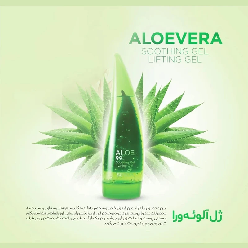 در «ژل ضد چروک سوادا مدل لیفتینگ آلوئه ورا حجم 200 میلی لیتر» تخمیر آب برگ آلوئه ورا موجود است. خواص خنک کننده آن با آبرسانی به پوست باعث خلاصی از شر آفتاب سوختگی در تابستان می شود. در فصل زمستان نیز با افزودن رطوبت به پوست، از خشکی پوست جلوگیری می کند. آلوئه ورا خاصیت ارتجاعی پوست را بهبود می‌بخشد و مانع از بروز چین و چروک می‌شود که استفاده‌‌ی موضعی از آن فرایند پیری پوست را به تعویق می‌اندازد. طبق مطالعه‌ای که بر روی 30 زنِ بالای 45 سال صورت پذیرفت، مشخص شد که پس از 90 روز استفاده‌ی موضعی از ژل آلوئه ورا کلاژن سازی پوست افزایش یافته و خاصیت ارتجاعی آن بهبود می‌یابد. مطالعه‌ایی دیگر در این زمینه حاکی از آن است که این ژل التهابات پوستی(سرخی نابهنجار پوست) را کاهش می‌دهد. شواهد اندکی دال بر آن وجود دارد که آلوئه ورا در درمان بیماری‌های پوستی از قبیل پسوریازیس( داء‌الصدف) یا سوختگی‌های ناشی از تشعشعات موثر است. نکته خوب در مورد ژل آلوئه ورا این است که هر فردی با هر نوع پوستی می تواند از آن استفاده کند، مانند افراد دارای پوست چرب، پوست خشک، پوست حساس و یا پوست طبیعی.طریقه مصرف: ابتدا صورت خود را شسته سپس کاملا خشک کنید. ژل الوئه ورا را برتمامی نواحی پوست صورت پخش کنید به طوری که تمامی چین و چروک های صورت را پر کند. بعد از 10 تا 15 دقیقه ژل لیفتینگ سودا به پوست شما جذب خواهد شد. ( مصرف ژل لیفتینگ صورت سودا را هفته ای 4تا 6 بار پیشنهاد می‌کنیم )